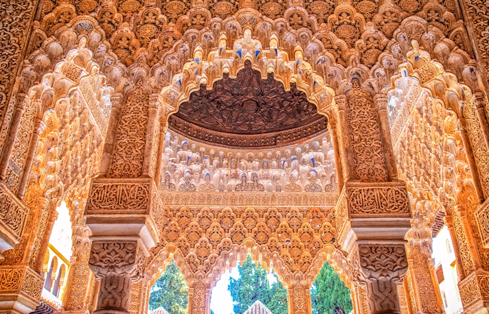 One of the primary reasons to visit Alhambra is it’s stunning architecture. Alhambra is not a singular palace but an entire complex housing Renaissance and medieval palaces and courtyards, all within a fortress. While located in Western Europe, Alhambra showcases traditional Islamic details pertaining to the East, including geometric patterns, column arcades, painted tiles, Arabic inscriptions, reflecting pools, and fountains. Certain features specific to Moorish architecture are on display here including the horseshoe arch, Islamic window screens, prayer niche and more. The authentic Islamic-style architecture on display at Alhambra makes it quite unique given that it’s located in Spain.