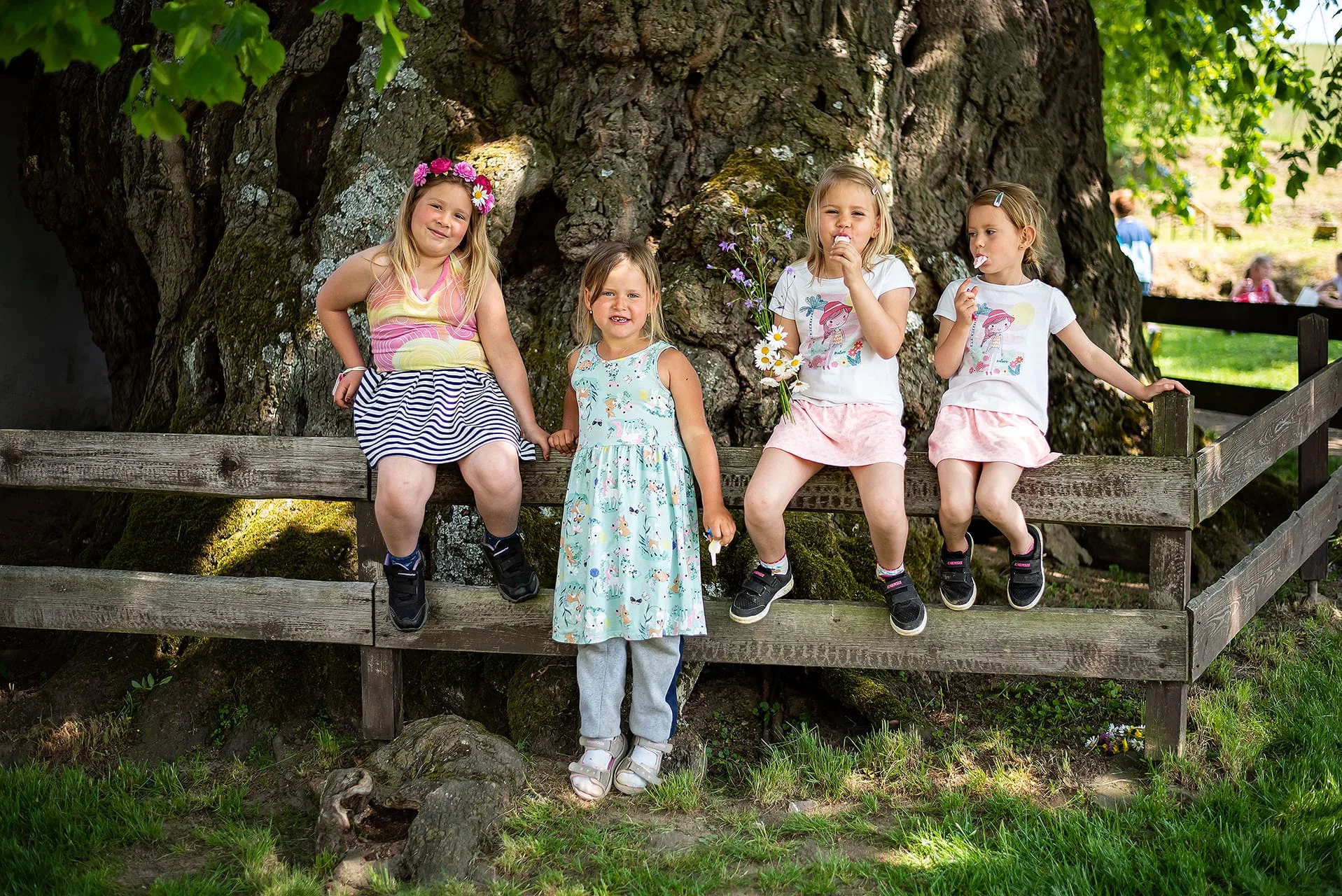 Today, the solitary linden tree stands in a garden, next to an old timber cottage. It belongs to the family of Veronika Dvořáčková, who used to play in its hollow trunk as a child: