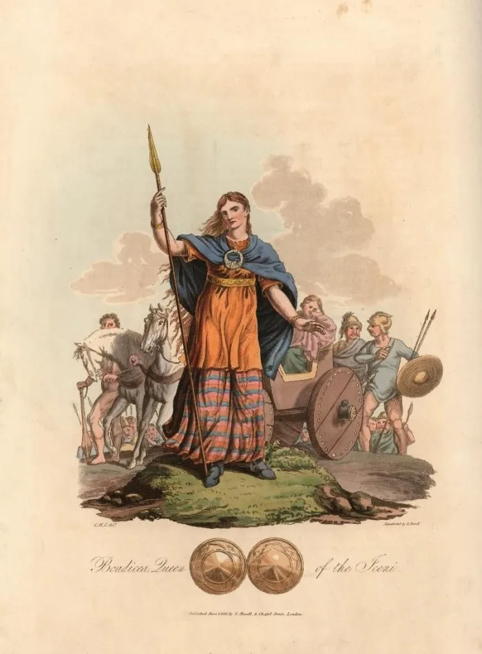 Charles Hamilton Smith, Boadicea, Queen of the Iceni, engraved by Robert Havell, senior, Hand-coloured etching with aquatint, 390 mm x 300 mm ©Royal Academy of Arts, London.