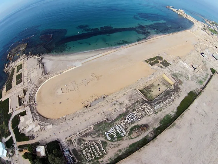 An aerial view of the south side of ancient Caesarea can be seen in the following Youtube video.