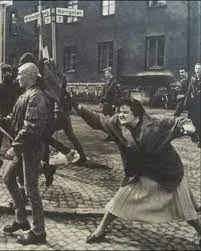On that spring day in Växjö, the Nordic Reich Party—a neo-Nazi group—marched through the streets with swastika flags and racist chants. Among the counter-protesters was Danuta Danielsson, a 38-year-old woman of Polish-Jewish descent whose mother had survived a Nazi concentration camp. Outraged by the display, Danielsson grabbed her handbag and charged, landing a solid blow on a marcher’s head. The photograph captured the instant: her determined expression, the purse in mid-air, the startled Nazi recoiling. The image became an instant symbol of anti-fascist defiance, reprinted worldwide and later inspiring murals and memes.