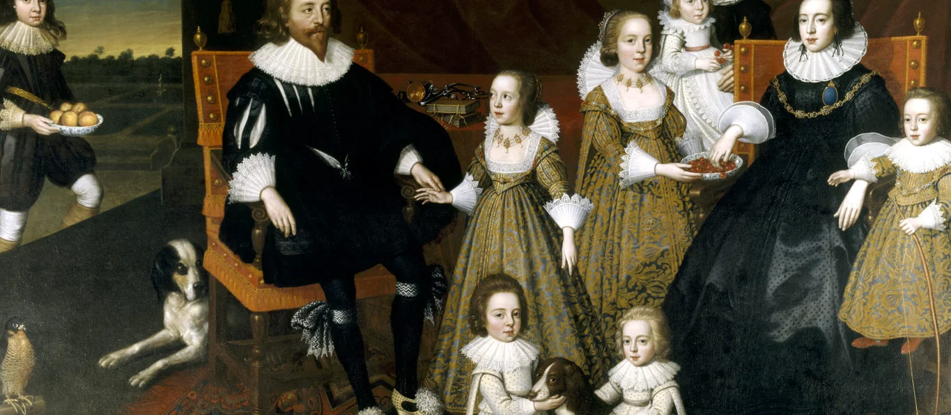 By the time the Lucy children reached adulthood the country would be torn apart by Civil War. Sir Thomas died in 1640 and so did not witness the turmoil. His eldest son Spencer, the boy carrying a bowl of peaches in the family picture, fought at Edgehill, the first battle in October 1642. He became a colonel in King Charles’ army.