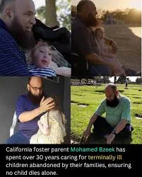 For over three decades, Mohamed Bzeek, a Libyan-born Arab-American from Los Angeles, has dedicated his life to one of the most heartbreaking yet profound acts of compassion: fostering terminally ill children whom the system has abandoned. As one of the only foster parents in Los Angeles County willing to care exclusively for these fragile lives—many with severe disabilities, cancer, or rare conditions—he has opened his home to more than 80 children, holding 10 as they took their final breaths. “I’ve cared for 80 children,” he says softly. “Ten of them died in my arms.” Many arrive nameless; he gives them one. Expected to live weeks, some stay years. Bzeek knows every acceptance means inevitable loss, yet he says yes—ensuring no child dies alone in a sterile hospital bed, but in warmth, peace, and love. Now battling cancer himself, he continues caring for a little girl with severe brain deformities, a child the world forgot. “She has feelings. She has a soul,” he insists. “She’s a human being.” Often called the “Muslim Mother Teresa,” Bzeek seeks no titles—only to love each child until their last breath.