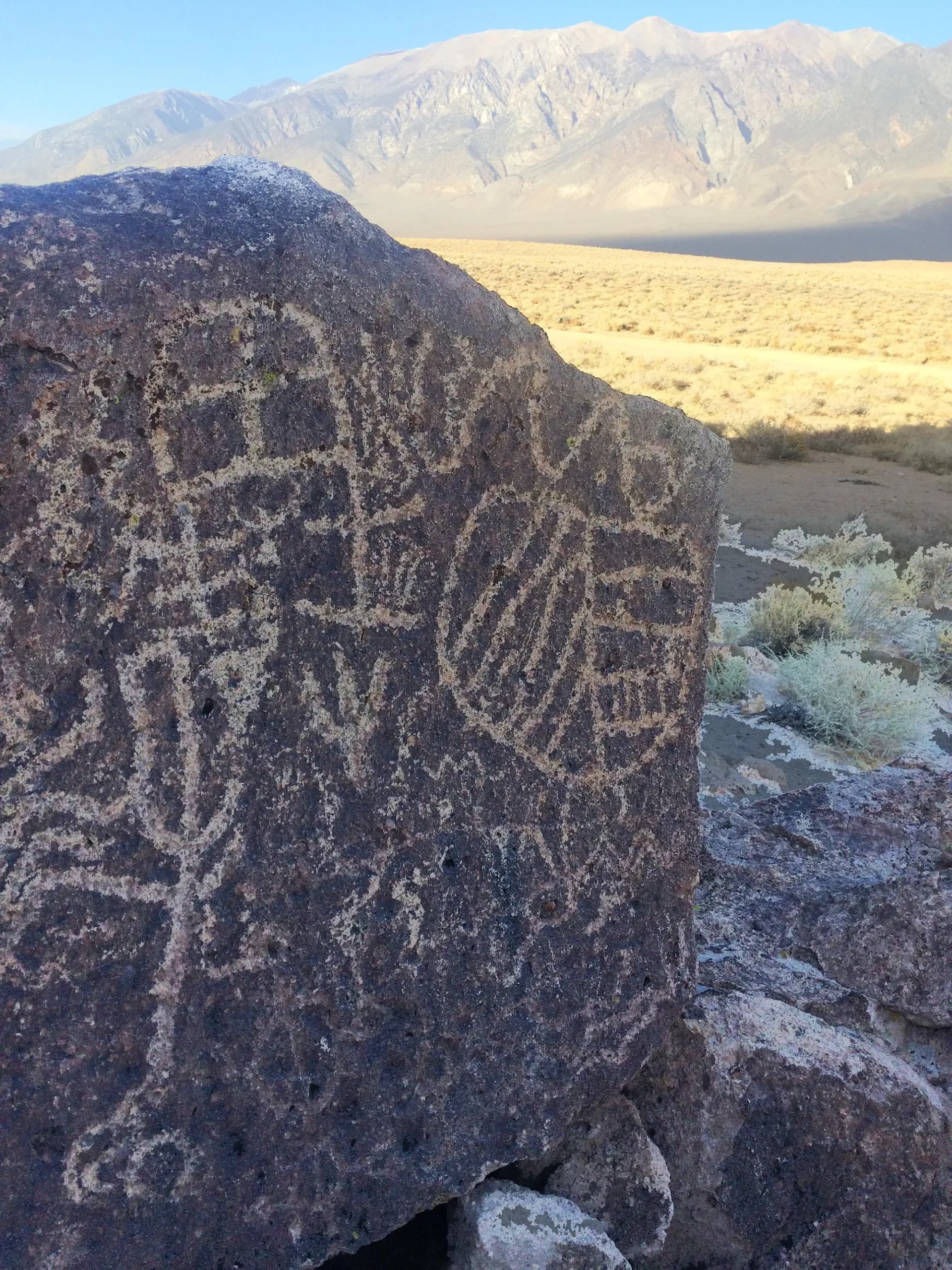 The petroglyphs in the Volcanic Tablelands outside of Bishop are one of the most awe-inspiring and intriguing things to see in the Eastern Sierra. Their locations are no longer widely advertised, unfortunately, due to destruction of some of the ancient art—if you visit the Chidago Canyon site, you can see where chunks of the volcanic tuff have been shaved off by vandals.