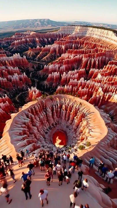 High atop the Paunsaugunt Plateau in southern Utah, Bryce Canyon National Park offers a landscape that defies imagination. The aerial view in a recent photo captures its essence: a sprawling amphitheater of vibrant red-orange hoodoos, sculpted over 60 million years, with a surreal circular sinkhole stealing the scene. This isn’t a true canyon but a series of natural bowls, carved by frost-wedging and monsoon rains into the Claron limestone. Let’s dive into what makes this park—and that striking image—so awe-inspiring.