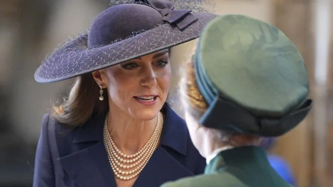 LONDON, ENGLAND – MARCH 09: Catherine, Princess of Wales speaks with Princess Anne, Princess Royal during the 2026 Commonwealth Day Service at Westminster Abbey on March 09, 2026 in London, England. (Photo by Aaron Chown – WPA Pool/Getty Images)