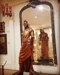 The Double Statue of Mephistopheles and Margaretta stands as one of the most mesmerizing and technically astonishing sculptures in the world, a 19th-century masterpiece that defies conventional artistry. Carved from a single block of sycamore wood by an unknown French sculptor, this double-sided figure captures two contrasting characters—Mephistopheles, the cunning demon of temptation, on one side, and Margaretta (or Gretchen), the innocent young woman, on the other. Measuring 177.2 cm (approximately 5 feet 10 inches) in height, the statue is displayed with a large mirror behind it at the Salar Jung Museum in Hyderabad, India, allowing viewers to appreciate both faces simultaneously. This ingenious design not only showcases the artist’s extraordinary skill in transforming a single piece of wood into dual, fully realized portraits but also embodies the eternal themes of good and evil, love and damnation from Johann Wolfgang von Goethe’s seminal play Faust. Far from a mere curiosity, the statue invites profound reflection on duality, human nature, and the artistry of illusion, making it one of the most photographed and discussed works in the museum’s collection.