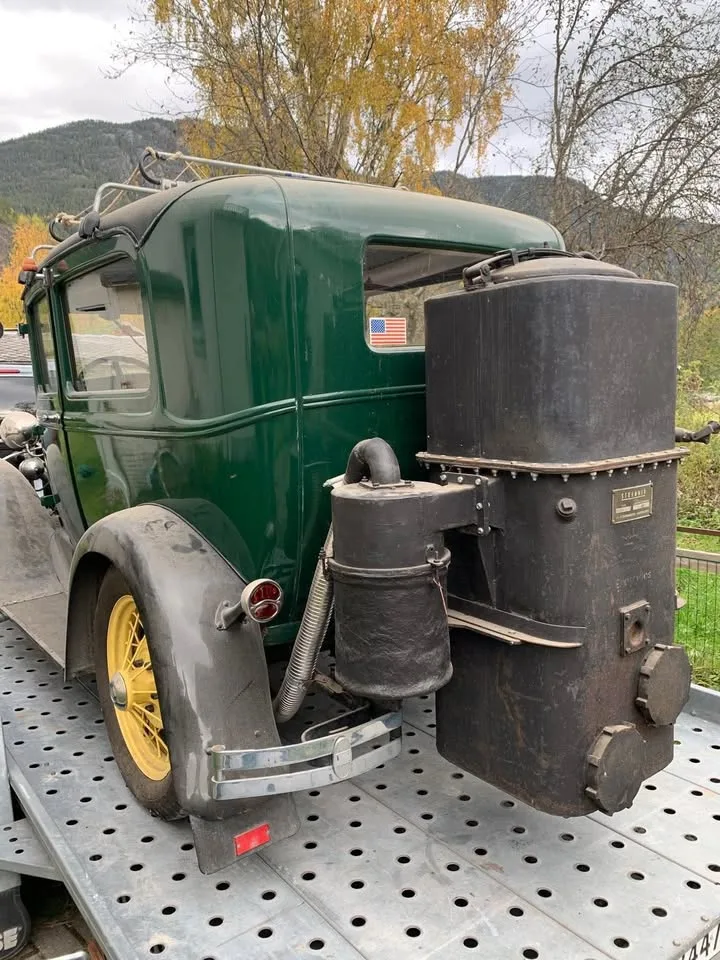 In 1942, amid World War II’s fuel shortages, Norwegian engineers at Frydenbø began designing the Frydenbø carbide generator—a wood gas system to replace rationed gasoline. Approved by the government in August, it was quickly produced and sold through Ford dealers near Oslo, with sub-agents nationwide. Often called the “knob car” or “wood-burning car” by locals, the generator was mounted on the rear of vehicles like the 1930 Ford, using small wood pieces (“knots”) to produce combustible wood gas. This innovation allowed cars to run on local resources, powering Norway’s wartime mobility.