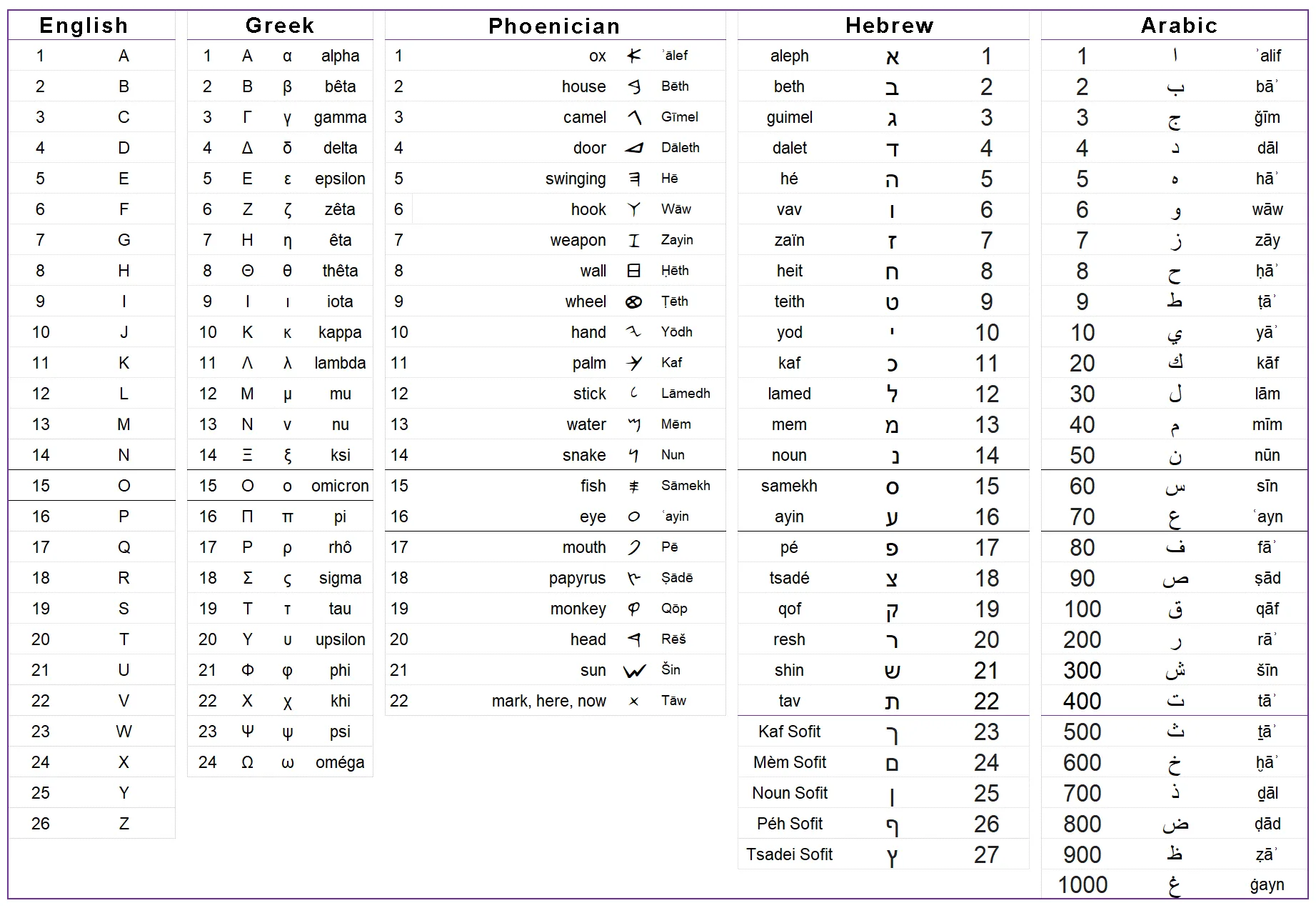 Here’s a side-by-side comparison showing how closely related many modern scripts still are: