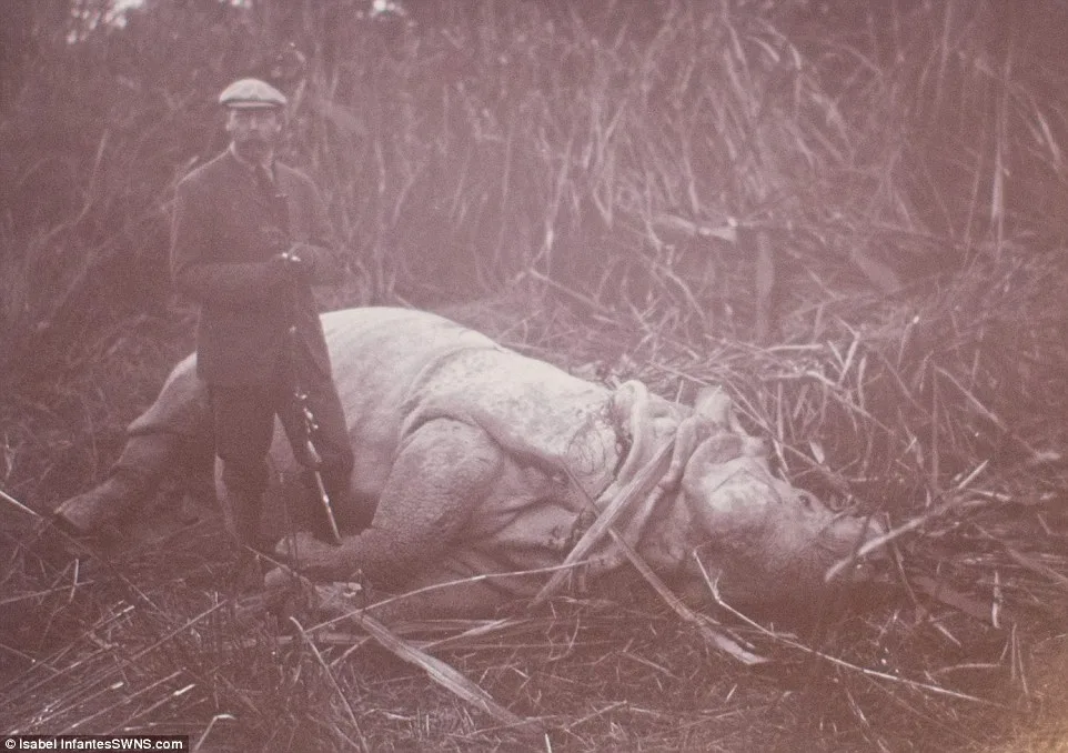 A book about the trip details how the King came across two rhinoceros. It explains how he ‘killed the first dead with one barrel, and with his second wounded another’.