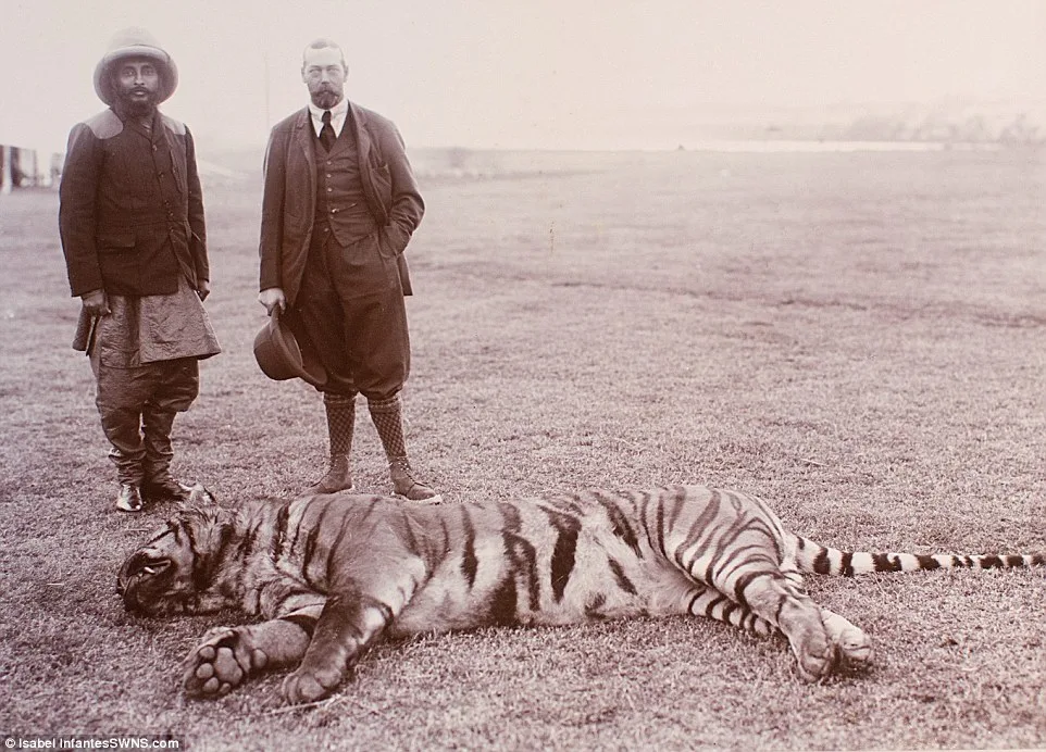The King’s hunting party killed 60 rhinos and tigers on a ten-day expedition in Nepal after he went to Delhi in 1911 to be crowned Emperor of India, a royal pursuit that might be considered shocking today.