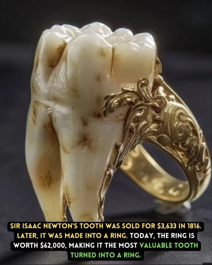 In 1816, a peculiar item surfaced in the collectibles market—a single tooth belonging to none other than Sir Isaac Newton, the legendary scientist whose work laid the foundation for modern physics and mathematics. Sold for an astonishing $3,633 at the time (equivalent to roughly $81,000 in today’s dollars when adjusted for inflation), this tooth was more than a curiosity; it was a tangible piece of history tied to one of the greatest minds ever known. Over the centuries, this extraordinary artifact was transformed into an exquisite ring, now valued at an impressive $62,000. This blog post explores the fascinating journey of Newton’s tooth, its transformation into a luxurious collectible, and why it remains a coveted treasure in the world of historical relics.