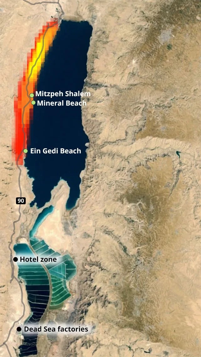 The result: the Dead Sea’s water level drops 1–1.5 meters (3–5 feet) every year.