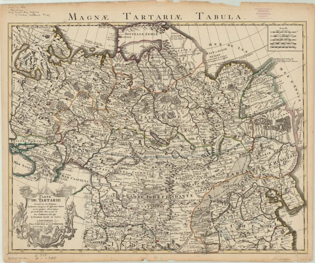 Carte de Tartarie: dressée sur les Relations de plusieurs Voyageurs de différentes Nations et sur quelques Observations qui ont été faites dans ce pais la. Guillaume de L’Isle, 1757. World Digital Library. Original at University of Wisconson-Milwaukee Libraries.