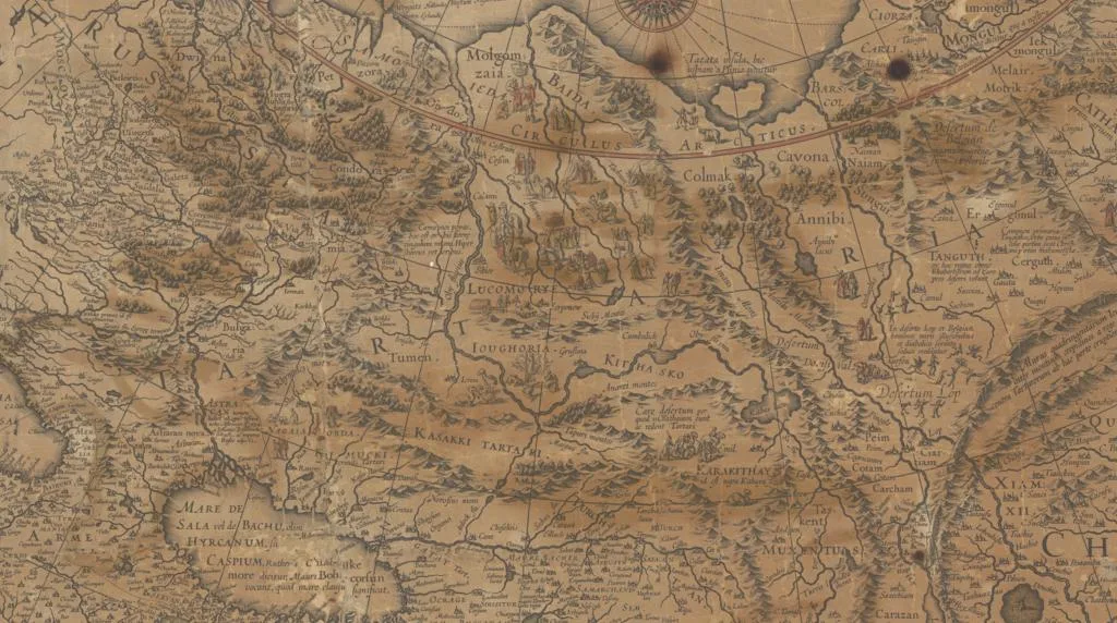 Old maps contain many intriguing place names: strange spellings for recognizable places, rumors of lands which once existed, and mysterious unknowns. One such enigmatic toponym which appeared on European and American maps from the 13th to the 19th century is “Tartary” – no Tartary can be found on a 21st century map, and what’s more, the area labeled as “Tartary” never seems to be in quite the same place on two different maps. What’s the story of this wandering place name?