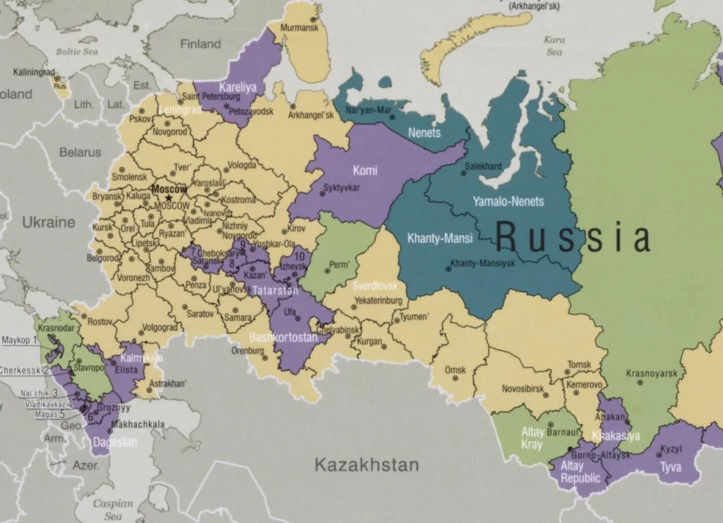 Detail of Russia–administrative divisions. United States. Central Intelligence Agency, 2009. Geography and Map Division.